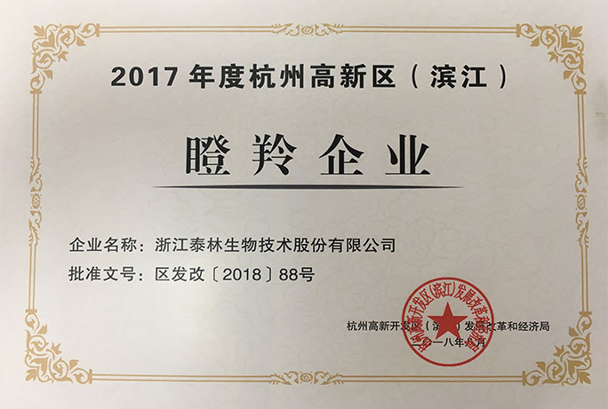 2018年8月下旬,2017年度高新區(qū)(濱江)瞪羚企業(yè)名單公布,浙江泰林生物技術股份有限公司榜上有名,標志著泰林生物連續(xù)3年獲評高新區(qū)(濱江)瞪羚企業(yè)稱…
