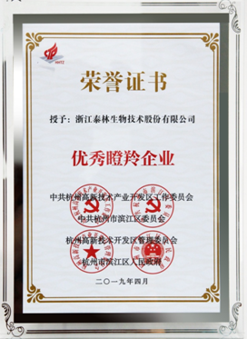 5月,濱江區(qū)召開全區(qū)經(jīng)濟(jì)會(huì)議,區(qū)黨委、區(qū)管委會(huì)、區(qū)政府對(duì)全區(qū)“優(yōu)秀瞪羚企業(yè)”進(jìn)行表彰,泰林生物憑借突出的創(chuàng)新成就、優(yōu)異的企業(yè)成長性成功入選百家“優(yōu)秀瞪羚企業(yè)”。