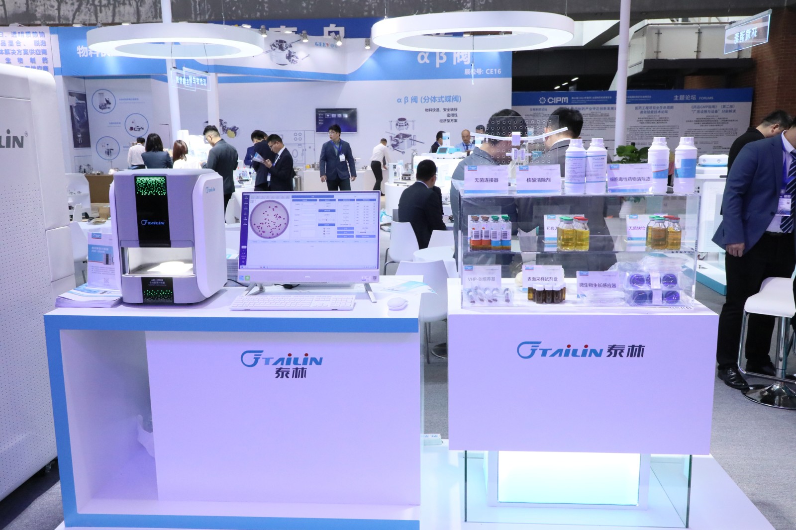 本次CIPM,泰林生物攜帶無(wú)菌藥品研發(fā)生產(chǎn)和質(zhì)量控制解決方案、數(shù)智化微生物實(shí)驗(yàn)室解決方案、微生物檢測(cè)解決方案、總有機(jī)碳(TOC)檢測(cè)解決方案等各具特色的解決方案亮相。同時(shí),還展出了全自動(dòng)無(wú)菌檢查培養(yǎng)系統(tǒng)、汽化過(guò)氧化氫消毒機(jī)、負(fù)壓隔離器、放射性藥品生產(chǎn)線熱室、總有機(jī)碳分析儀、NC轉(zhuǎn)印膜等自主研發(fā)產(chǎn)品,吸引了眾多嘉賓和行業(yè)專(zhuān)家駐足交流。