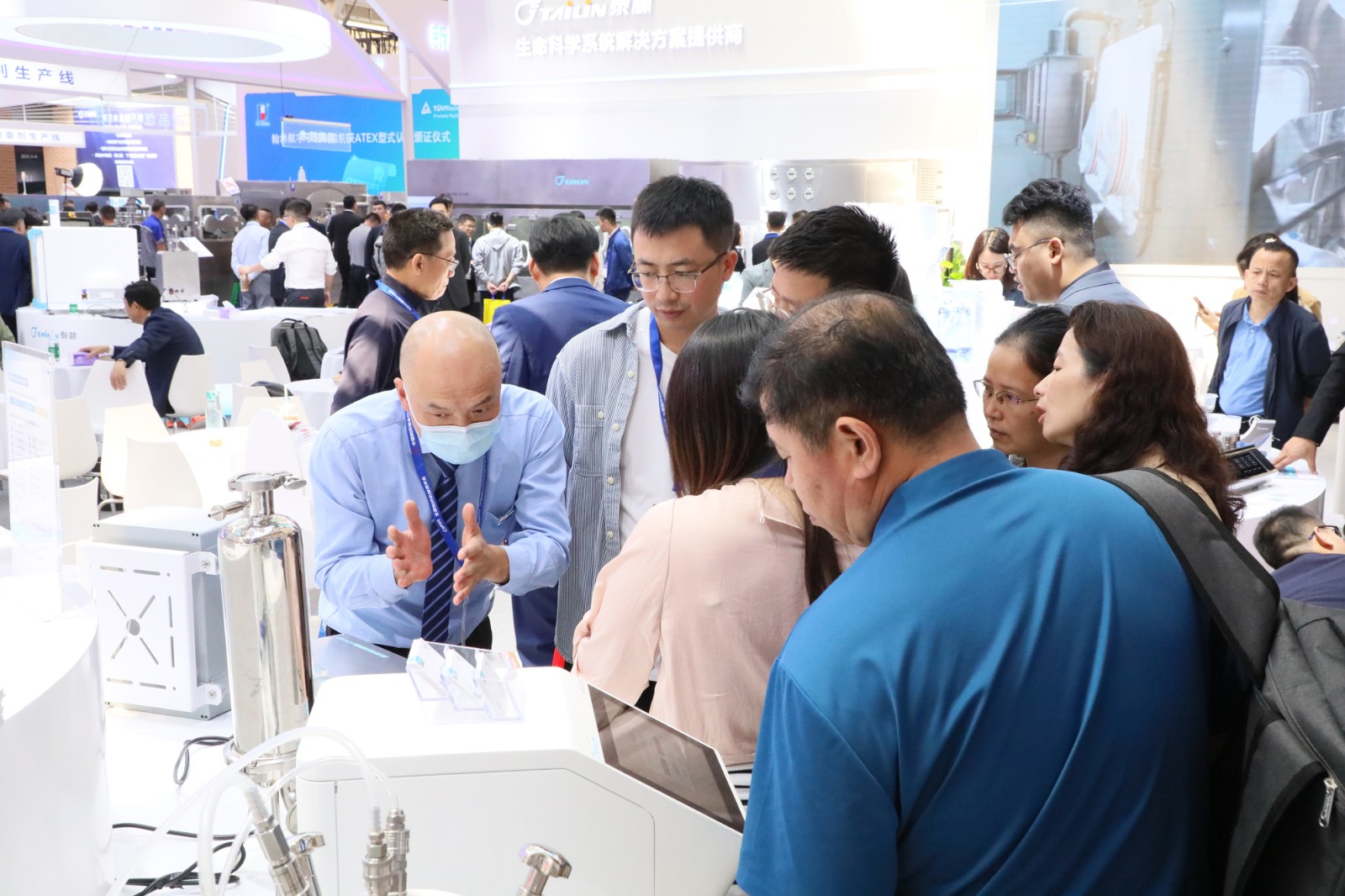 展會(huì)期間,絡(luò)繹不絕的觀眾聚集泰林生物展位,我們的工作人員全程提供專(zhuān)業(yè)的講解服務(wù),與現(xiàn)場(chǎng)各位專(zhuān)家學(xué)者、各企事業(yè)相關(guān)人員,多角度探討制藥裝備行業(yè)發(fā)展趨勢(shì)和最新的技術(shù)應(yīng)用,為制藥生產(chǎn)提供更加安全、高效和可靠的建設(shè)思路。